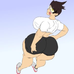 Overwatch Hentai Art – tracer, pose, thick, brown hair, curvy body, clothing, ow