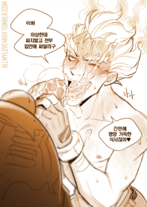 Overwatch Xxx Art – cum in mouth, gay, junkrat, speech bubble, roadhog, one eye closed