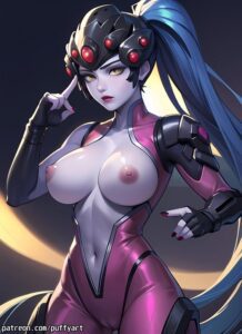 Overwatch Hentai Art – widowmaker, puffyart, gloves, long hair, ai generated, cameltoe