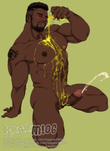 Overwatch Sex Art – dark hair, pale-skinned male, brown skin, dark nipples, size difference, hand on penis