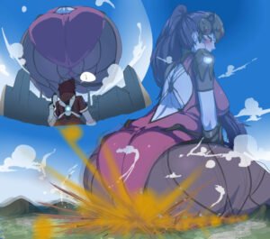Overwatch Xxx Art – purple skin, hand on belly, vore, widowmaker, same size vore, nipples