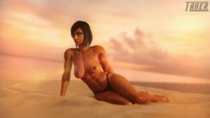 Overwatch Game Porn – big butt, huge ass, dark-skinned female, swimsuit.