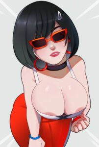 Penny Game Porn – futanari, hand on waist, nipples visible through clothing, thick thighs, black lipstick