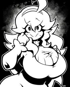 Pokemon Game Hentai – looking at viewer, heart, outline, nervous. Huge breasts, sweat, game freak, 11 22, purple eyes, pokemon xy, hand on stomach, dress, outline, heart.