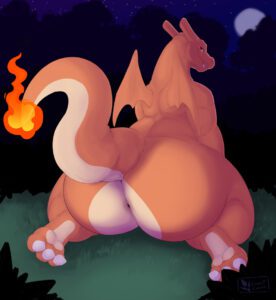 Pokemon Sex Art – looking at viewer, big butt, anus, night time, solo, presenting hindquarters, looking back
