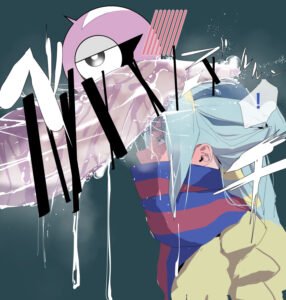 Neon Porn – areola bulge, fit female, sakimichan, black nails, blue sports bra, lightning, shoulder length hair