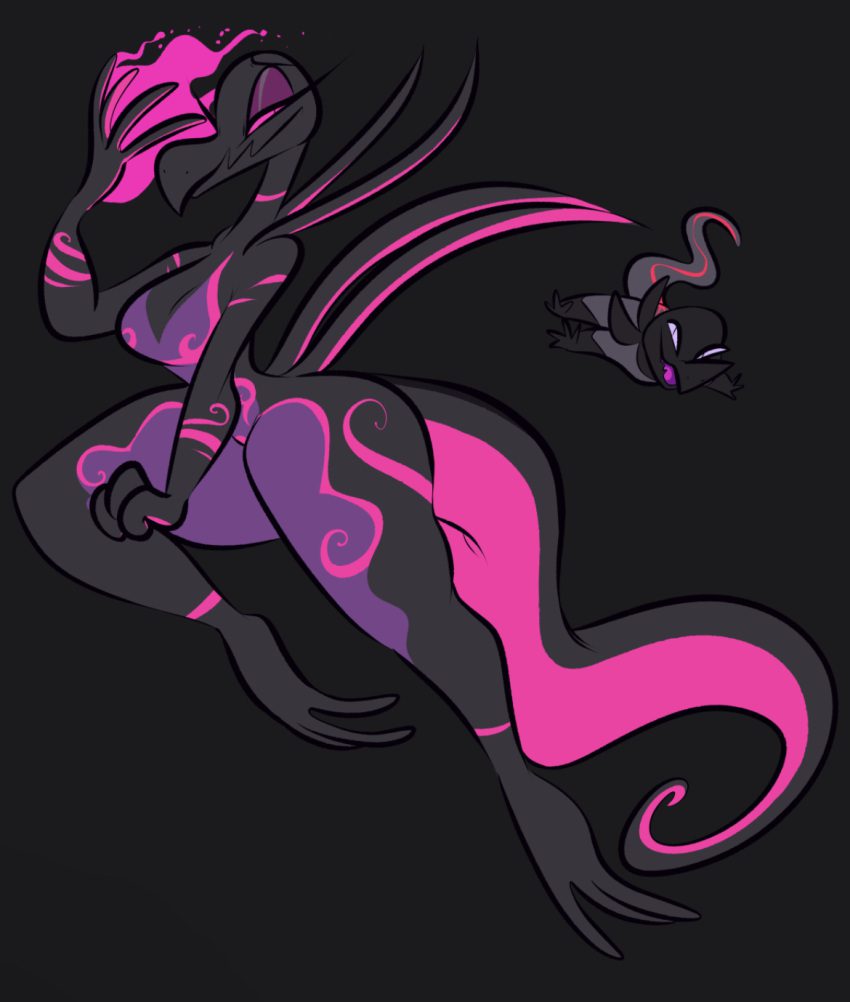 Pokemon Hentai Porn – lizard tail, two tone body, breasts, tattoo, female focus