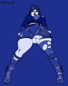 Holowear Rule Xxx – flat colors, tea party style glaceon, tail, blue fur, chastity cage, male, genitals
