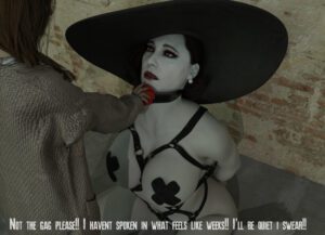 Resident Evil Porn Hentai – leather, bound, breasts, gag around neck, resident evil illage, dialogue