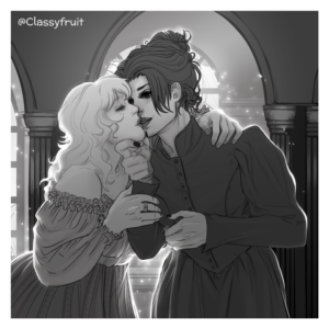 Resident Evil Hentai – imminent kiss, yuri, monochrome, donna beneviento, resident evil illage, original character, hand under chin.