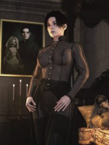 Resident Evil Hentai – nipples, resident evil illage, black clothing, no panties under skirt, no panties under dress, solo, ls