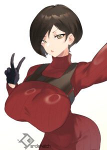 Resident Evil Game Hentai – yellow eyes, peace sign, ardisketch, ada wong, brown hair, huge breasts, capcom