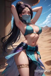 Sage Porn – harem girl, medium breasts, black hair, riot games, girl, sex