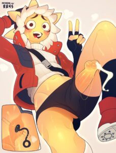 Rufus Game Porn – procyonid, trash bag, fork, jacket, topwear, green hair, brown body