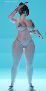 Mei Free Sex Art – chubby female, breast press, outstretched arm, voluptuous, swimwear, eye contact, cleavage overflow