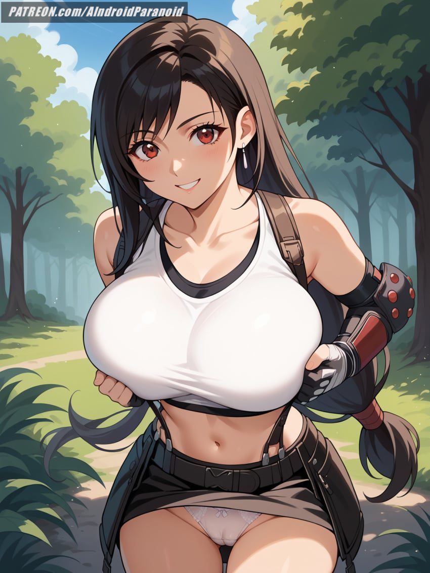 Alex Hentai Art, Steve Hentai Art – teasing pussy, smug smile, no bra, thick thighs, strong woman