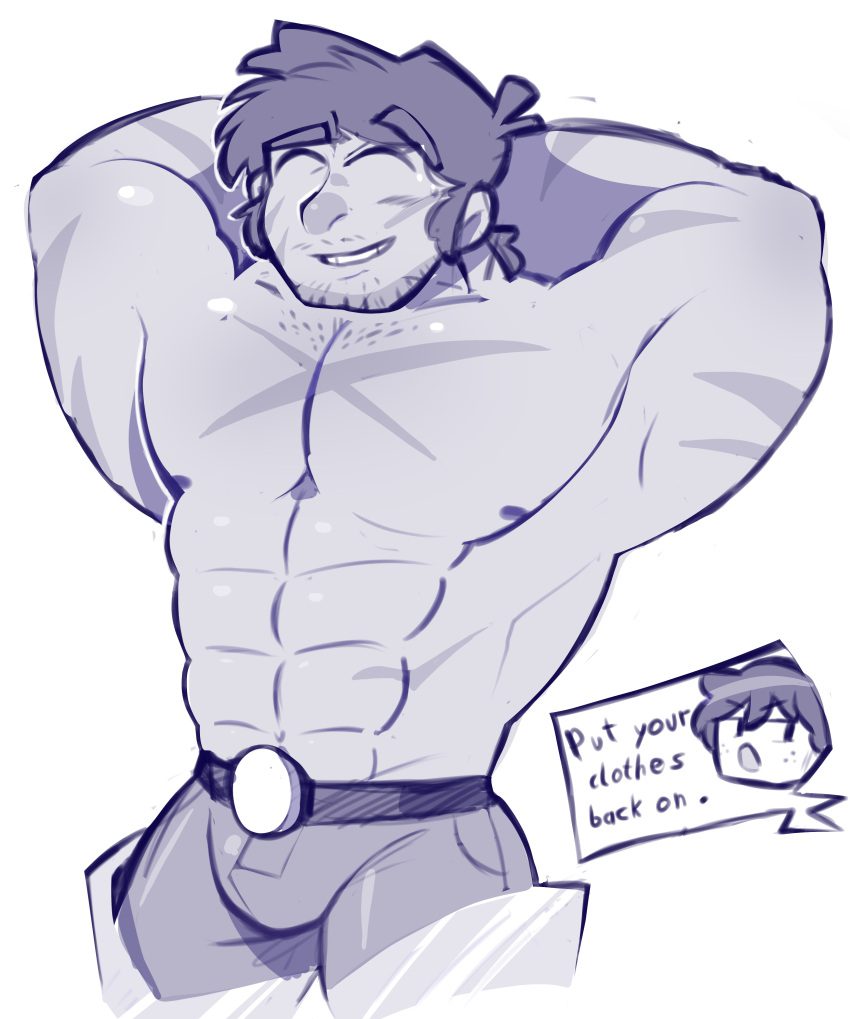 Minecraft Xxx Art – muscular male, hands behind head, muscular, blush, text bubble October 29, 2023 by valorantporn