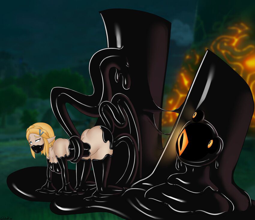 Slurp Rule Xxx – thighs, slime, peace sign, areolae, slime girl. Black eyes, translucent body, video games, female, vaginal penetration, peace sign, solo, slime, ella slurp, non-human, presenting, nipples, sex toy insertion, areolae, thighs, nude.