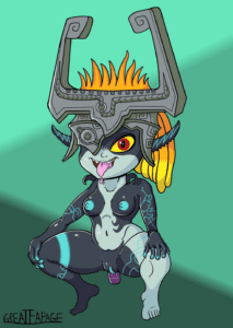The Legend Of Zelda Hentai Art – tongue out, crouching, nintendo, bodily fluids