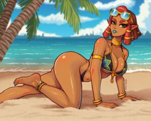 The Legend Of Zelda Game Porn – dark skin, breath of the wild, red hair, areolae, gerudo, topless