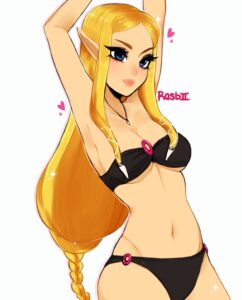 The Legend Of Zelda Sex Art – navel, medium breasts, princess zelda, blue eyes, o-ring bikini
