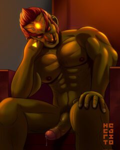 The Legend Of Zelda Hentai – huge cock, huge balls, precum drip, looking at viewer, male only, abs