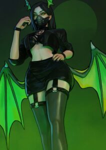 Viper Porn Hentai – bracelet, stockings, wings, bra, upskirt, black nails, mask